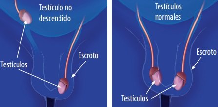 Normalmente durante la gestación, los testículos están en posición intra abdominal, pero cerca del nacimiento deben descender a la bolsa escrotal, en caso de que esto no ocurra, la presencia de los testículos en el abdomen favorece el daño de los mismos y aumenta la posibilidad de formación de cáncer testicular.