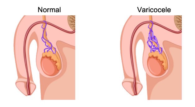 El varicocele consiste en una dilatación de las venas que drenan la sangre de los testículos (plexo pampiniforme). En el 87% de los casos afecta al lado izquierdo, en el 7% es bilateral y en el 3% solamente afecta al lado derecho. No obstante, afecta a la fertilidad de ambos testículos.